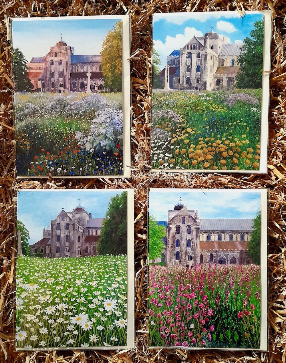 Romsey Abbey wildflowers - a set of four professionally printed cards from my paintings of the wildflower meadow.